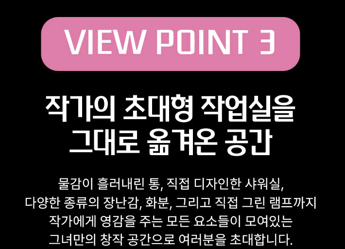 - 단순한 미술 전시가 아닌, 공간 전체를 활용한 체험형 예술을 경험할 수 있습니다.