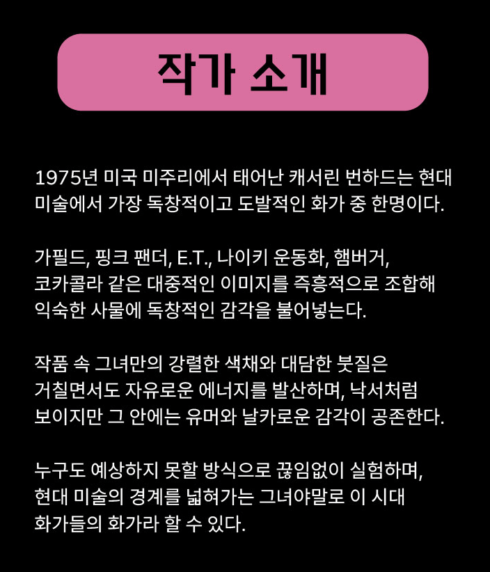 - 추천 관람층: 현대미술 애호가, 페미니즘 아트 관심자, 대학생 및 예술 전공자