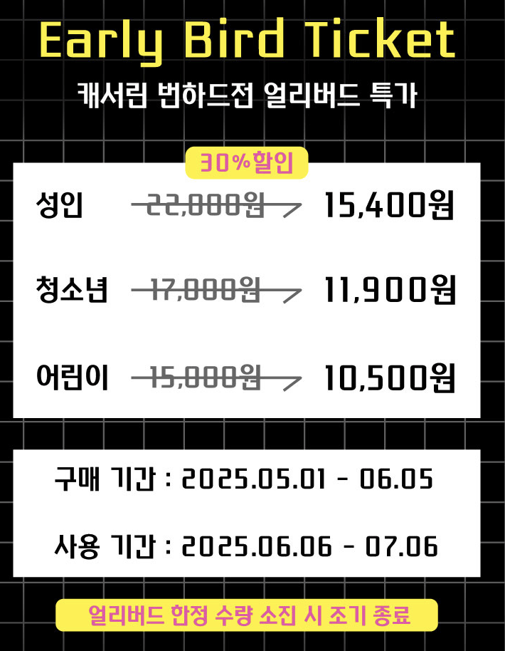 - 36개월 미만 유아: 생년월일 증빙 시 무료 입장