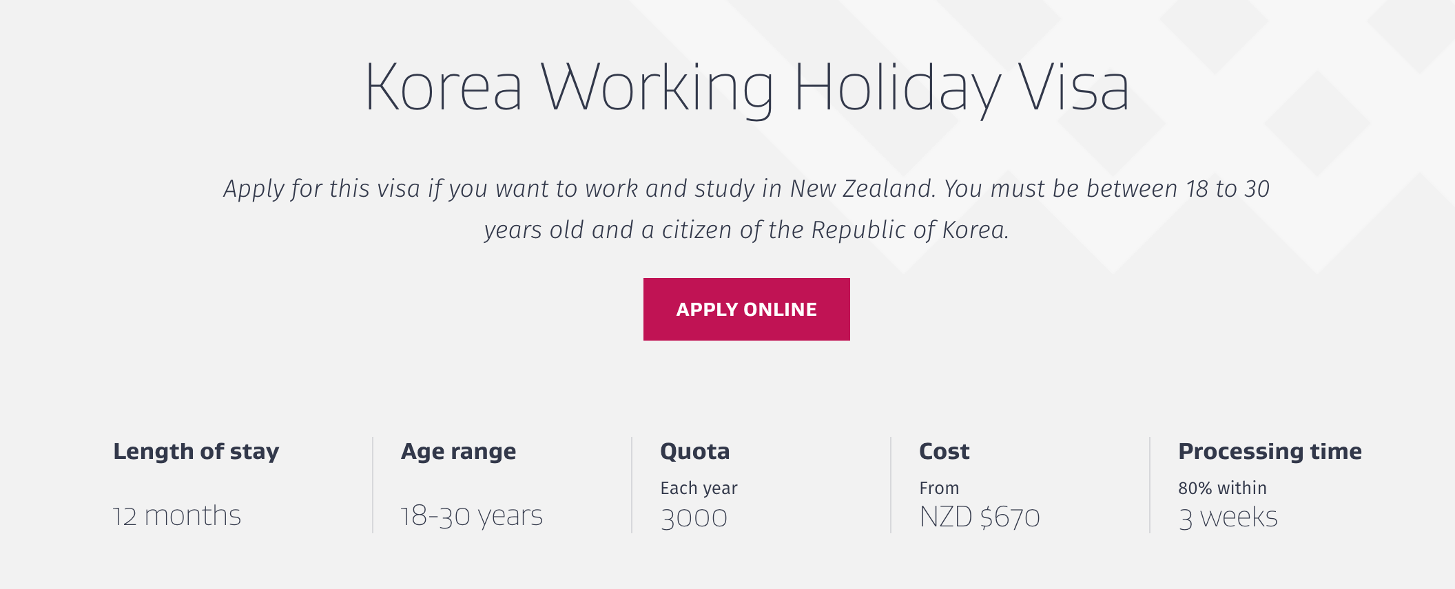 국가별 워킹홀리데이 시작일 확인 : 뉴질랜드 이민성 공식 사이트