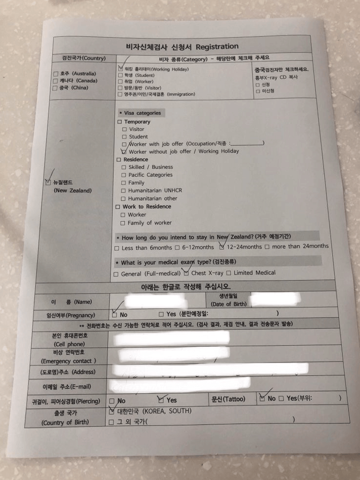 방문 비자로 입국 후 현지에서 워킹홀리데이 비자로 전환 시 고가의 신체검사비용(NZ$500~800) 발생
