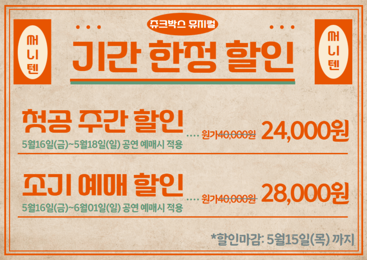 할인 혜택은 선착순으로 조기 마감될 수 있으니 서둘러 예매하는 것이 좋습니다. 또한 공식 예매처인 네이버 예매, 인터파크 티켓, YES24를 통해 안전하게 예매하시기 바랍니다.