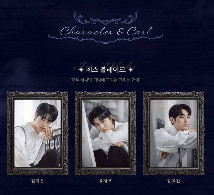 제스 블레이크 | 김지온, 윤재호, 강유찬 | 트라우마를 가진 순수한 청년. 꿈속 괴물을 아름다운 존재로 여김 |