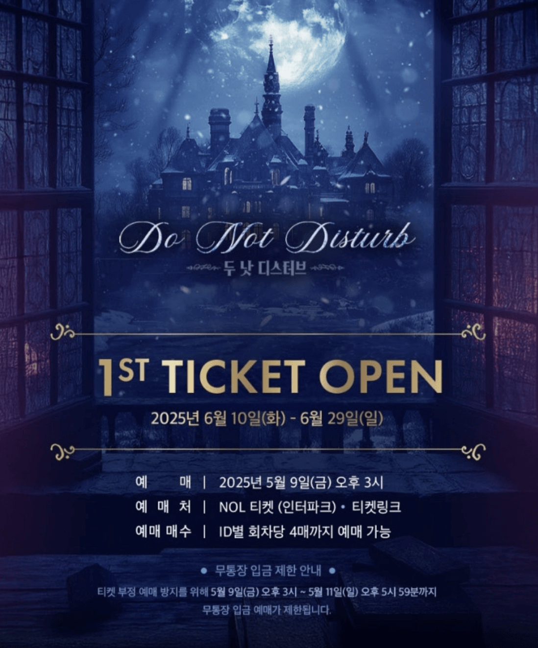 2025년 여름, 에레보스 호텔의 문이 여러분을 기다립니다. <두 낫 디스터브>는 단순한 엔터테인먼트를 넘어 관객들에게 깊은 여운을 남길 작품입니다. 티켓 예매는 5월 9일 오후 3시 시작되니, 놓치지 마시기 바랍니다!