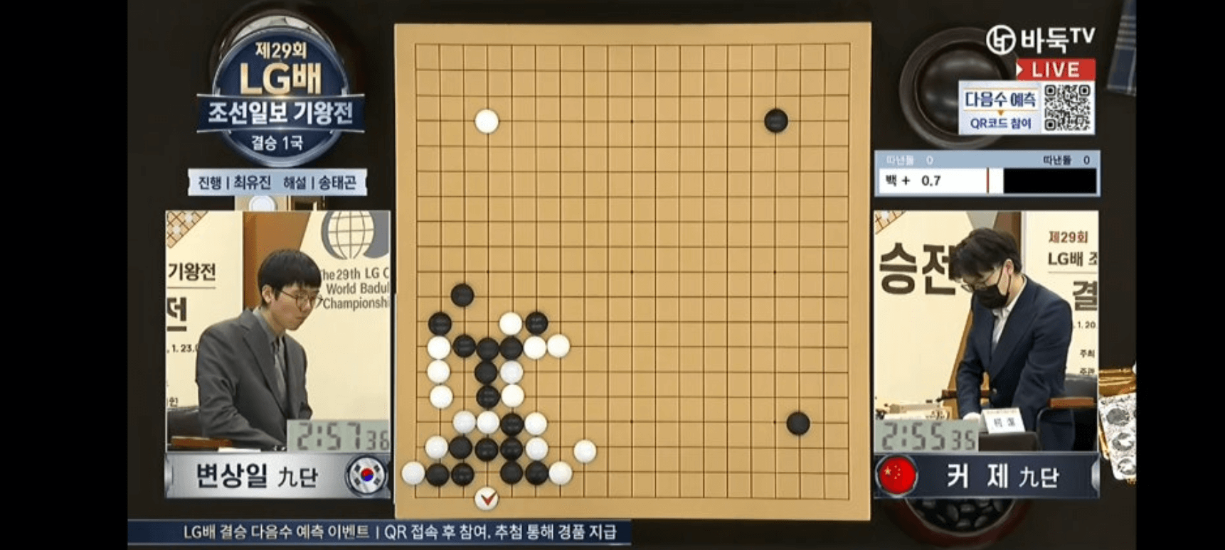 커제는 이 기회를 놓치지 않고 끝까지 안정적인 플레이로 승리를 확정 지었습니다. 변상일은 마지막까지 기적을 꿈꾸며 도전했지만, 커제의 철저한 계산과 집중력 앞에서 패배를 인정해야 했습니다.