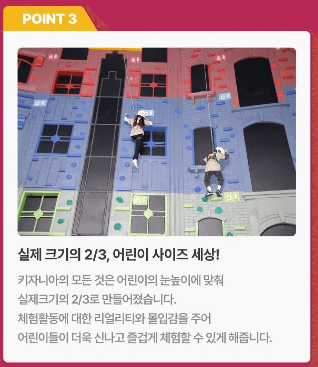 4~7세: 소방서, 동물병원, 아이스크림 가게 등 역할놀이 위주의 체험
