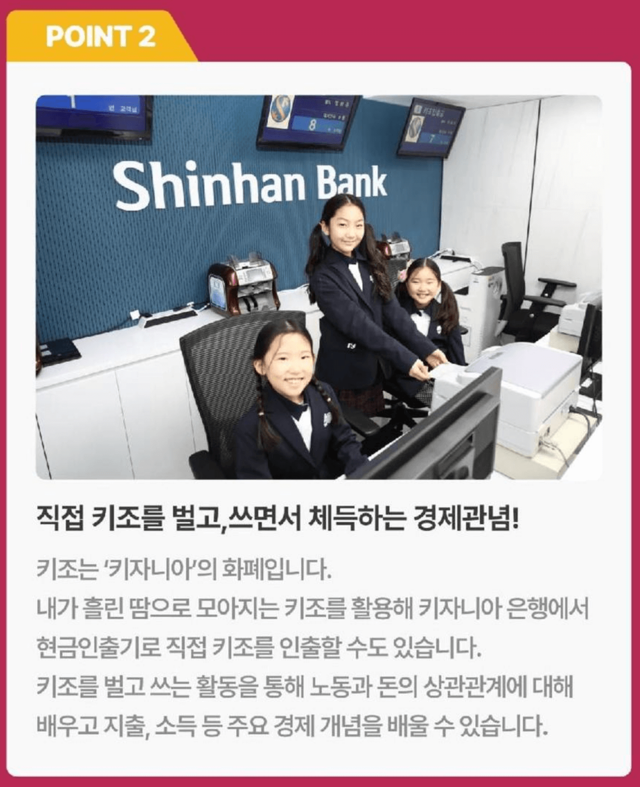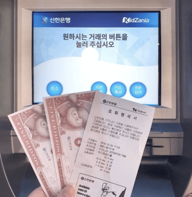 ATM에서 현금 인출: 키자니아 내에 설치된 ATM에서는 자신의 현금카드를 사용해 키조를 인출할 수 있습니다. 이 과정에서 아이들은 실제 은행 시스템과 유사한 경험을 하게 됩니다.