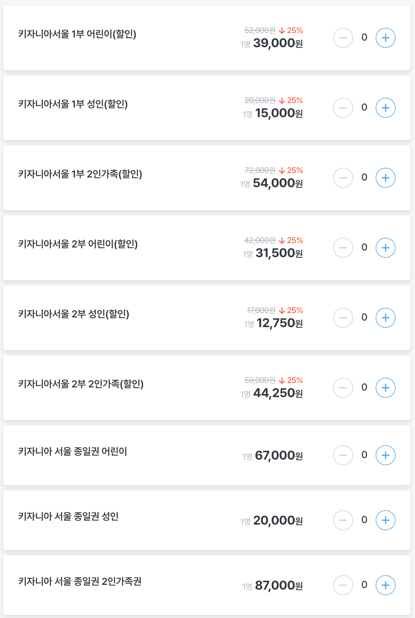 마이리얼 트립 키자니아 입장료는 다음과 같이 구성되어 있습니다. (25% 할인)
