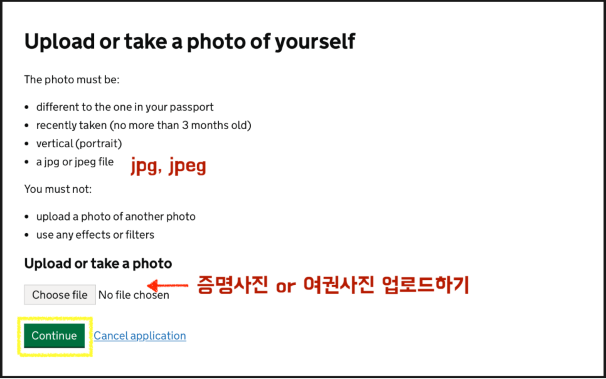 - 얼굴 사진 (JPG) 도 필요합니다. 이때 파일사이즈가 가로 (짧은면 기준 ) 600px이상이어야 합니다. 어플로 신청시는 직접찍으면 되는데 단, 사진찍을때 배경이 아무것도 없어야 합니다.