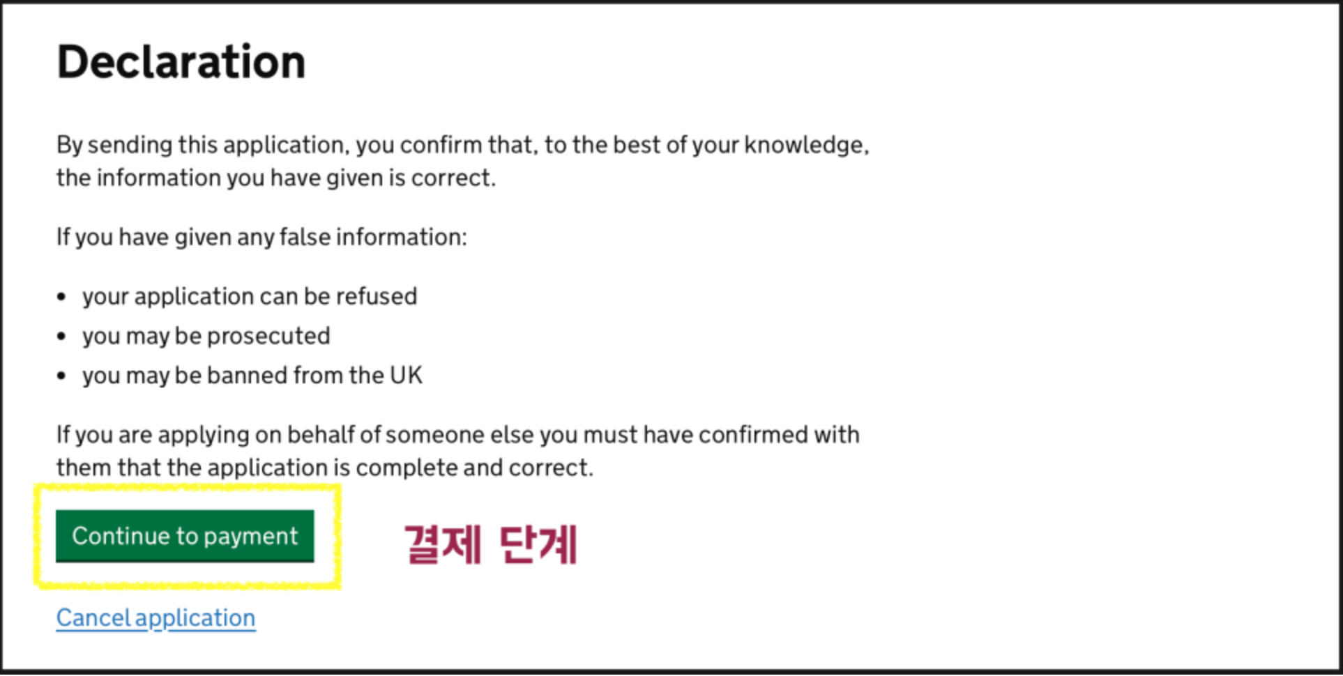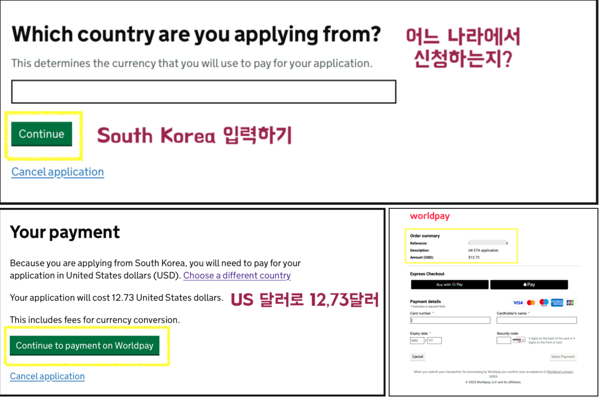 - 신청 비용 10파운드 결제 (카드 및 애플페이 가능) 한국에서 신청시 US 달러로 결제 (12.73달러)