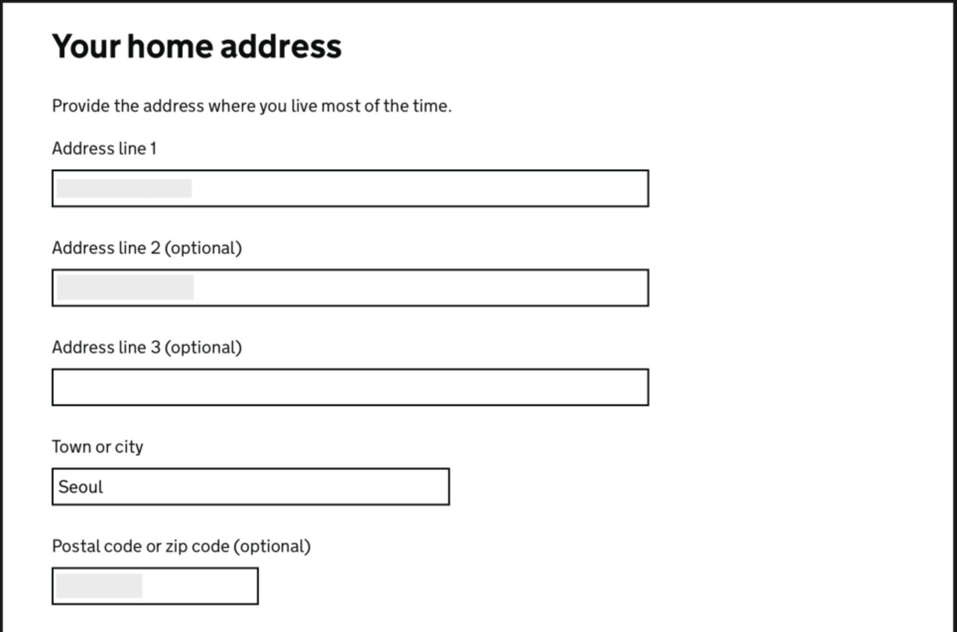 - Your home address 집주소 입력 ( 상세주소는 생략가능)