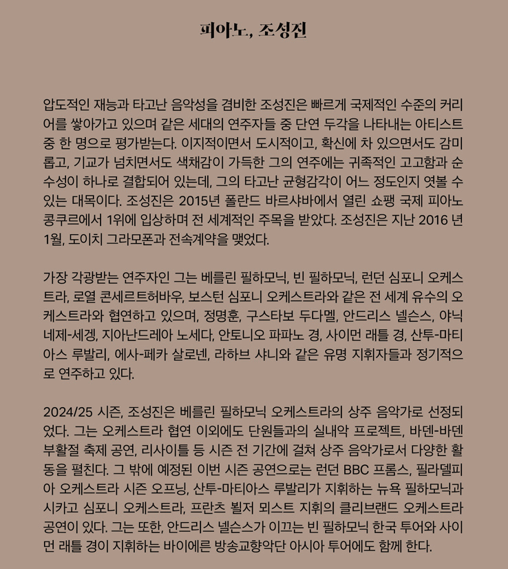공연명: 조성진 피아노 리사이틀 성남 2025 - 쇼팽 콩쿠르 우승 10주년 기념
