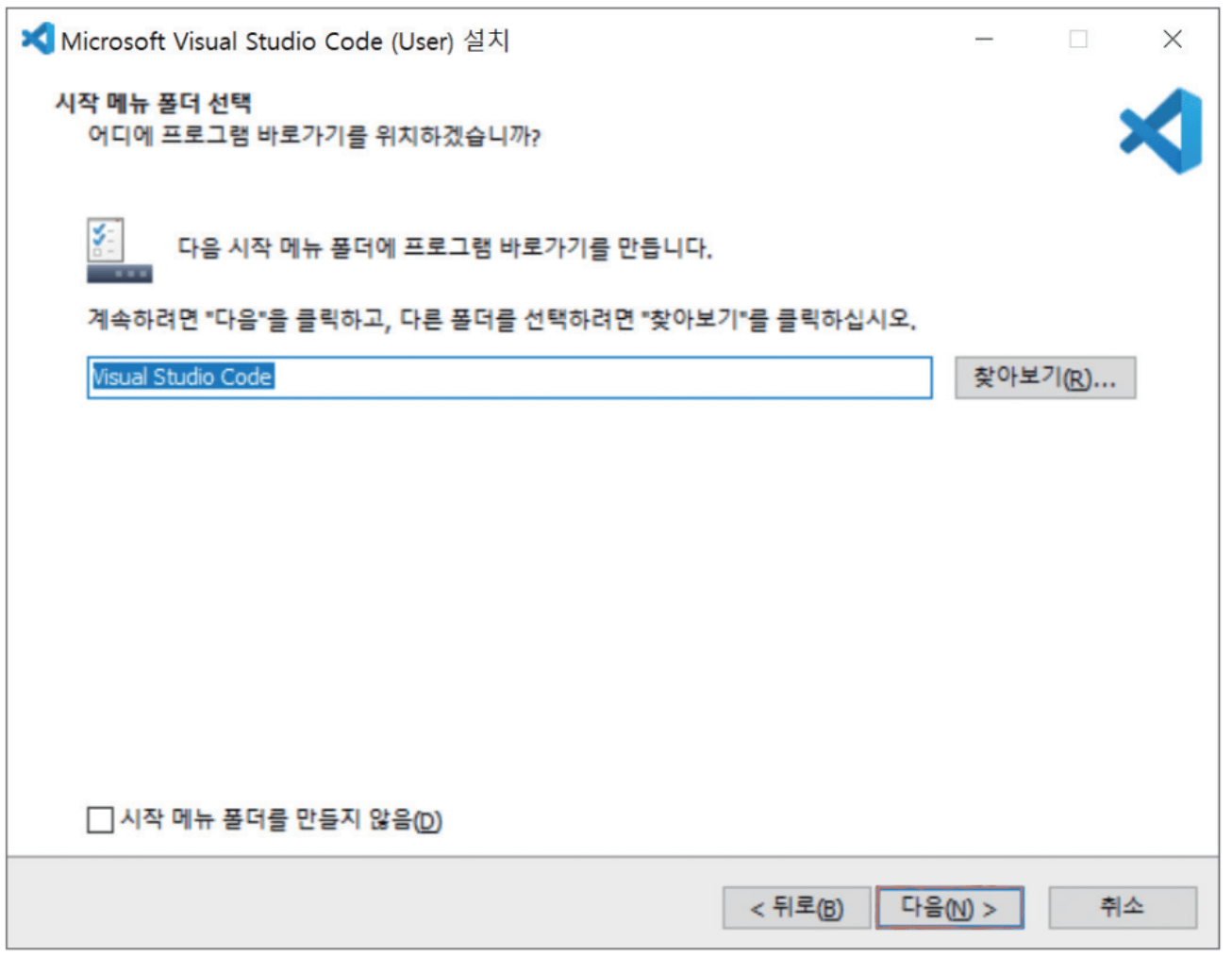 05 시작 메뉴 폴더의 이름을 지정합니다. [다음] 버튼을 클릭합니다.