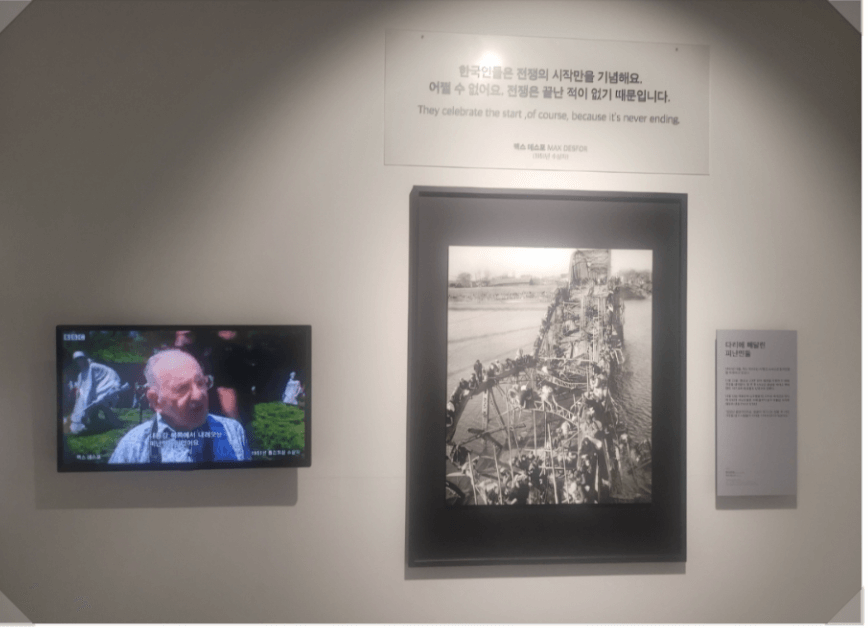 이번 전시는2차 세계대전부터 한국전쟁, 베트남 전쟁, 베를린 장벽 붕괴, 9.11 테러, 시리아 내전, 우크라이나 전쟁에 이르기까지 인류 역사의 주요 전환점을 기록한 작품들을 총망라합니다. 특히 한국전쟁 당시 대동강 철교를 건너는 피난민들의 모습을 담은 작품은 관람객들로 하여금 전쟁의 참혹함을 생생하게 전달합니다.