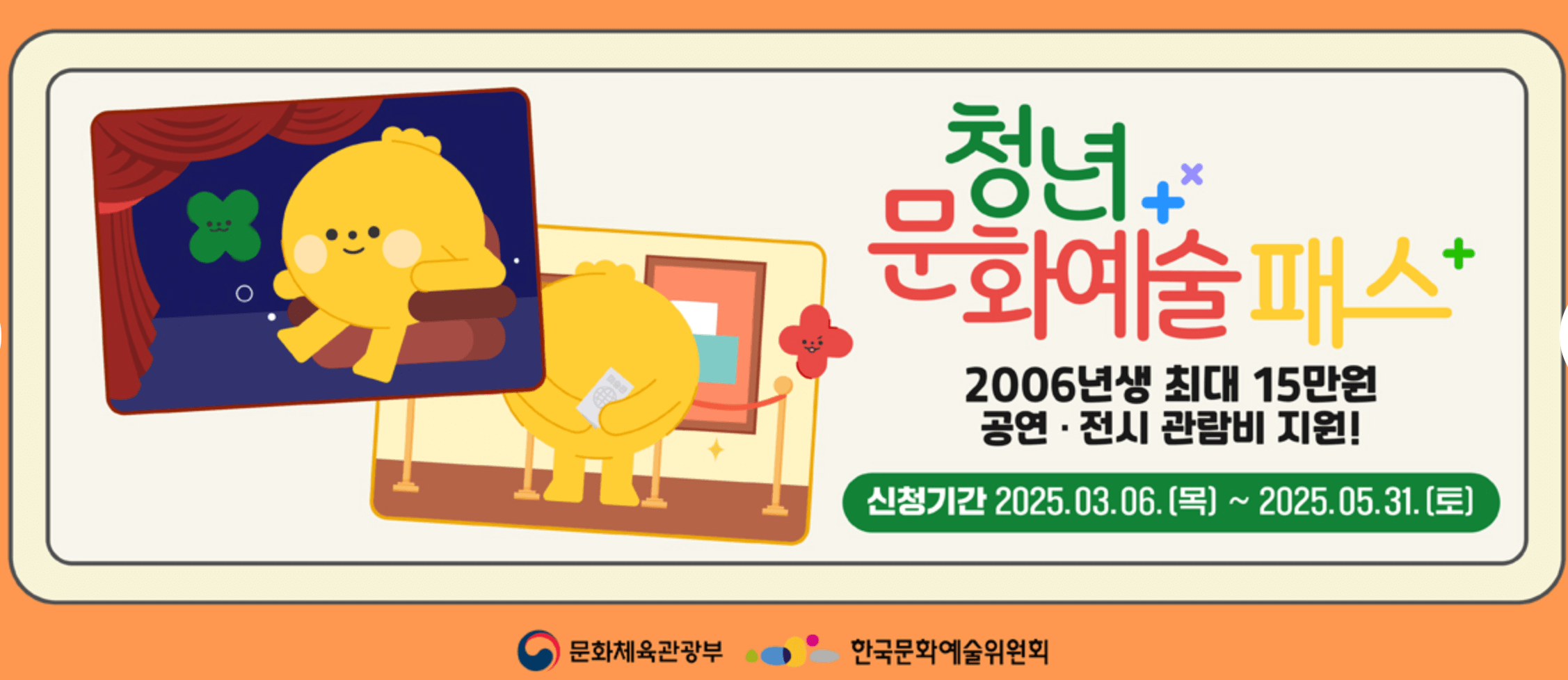 청년문화예술패스는 대한민국 19세 청년들을 위한 문화예술 관람 지원 사업입니다. 문화체육관광부와 한국문화예술위원회가 주관하는 이 프로그램은 청년들이 다양한 공연과 전시를 접할 수 있도록 경제적 지원을 제공합니다. 2006년 출생자(2025년 기준 19세)를 대상으로 1인당 연 10만 원에서 최대 15만 원까지 지원하며, 지역별로 지원 금액이 상이할 수 있습니다.