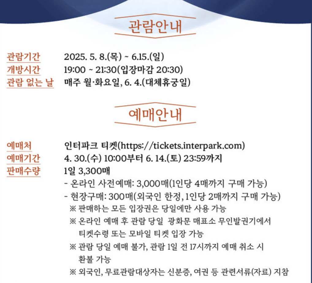 - 취소 마감: 관람 전일 17:00 (당일 취소 불가)