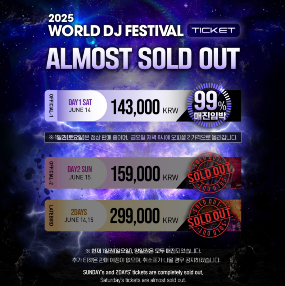 2025 월드 디제이 페스티벌(WDJF)의 슈퍼얼리버드 티켓이 매진되었습니다.
