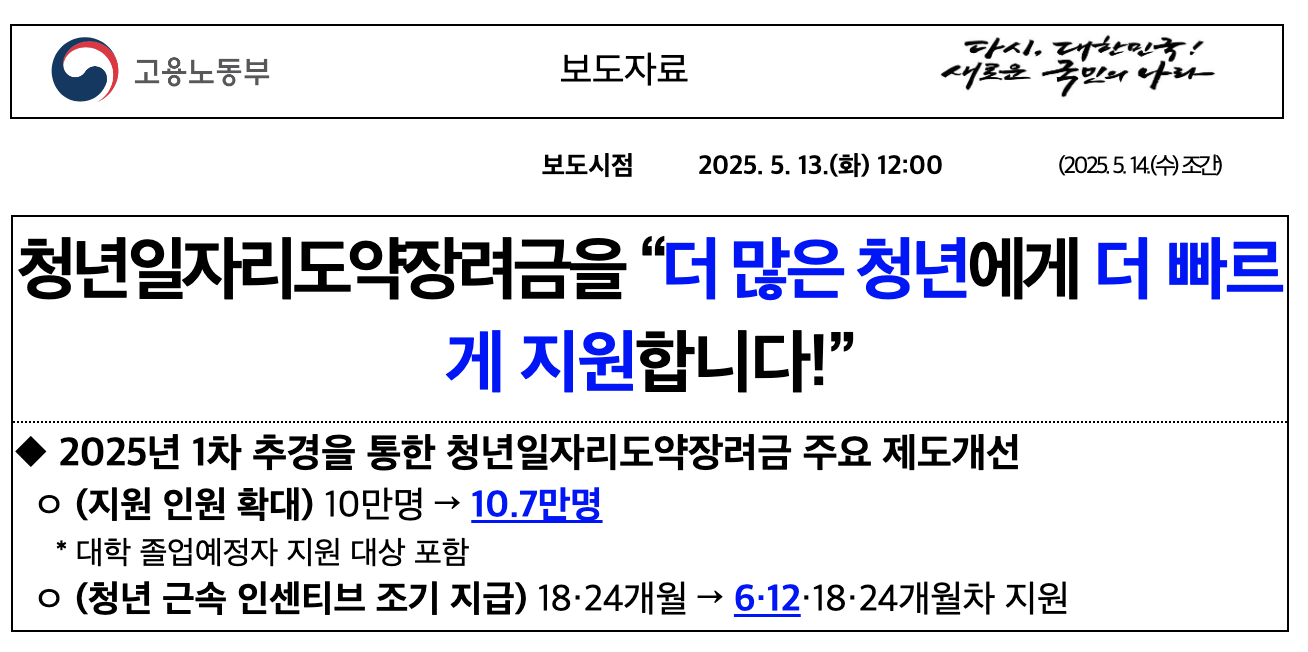 - 지원 인원 확대: 10만 명 → 10.7만 명(대학 졸업예정자 7,000명 추가 포함)