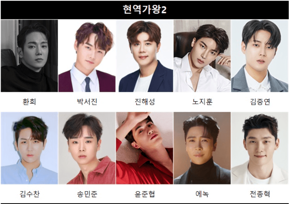 현역가왕 2에 출연한 대한민국 최정상 남성 트롯 가수들이 총출동합니다. (출연진은 사정에 따라 변경될 수 있습니다.)