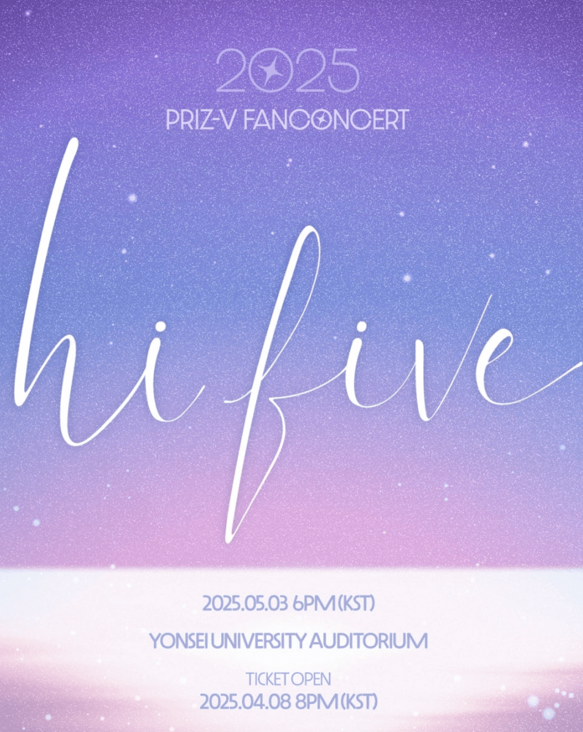2025년을 뜨겁게 달굴 Priz-V의 대규모 팬콘서트 'Hi-Five'가 연세대학교 대강당에서 열립니다.